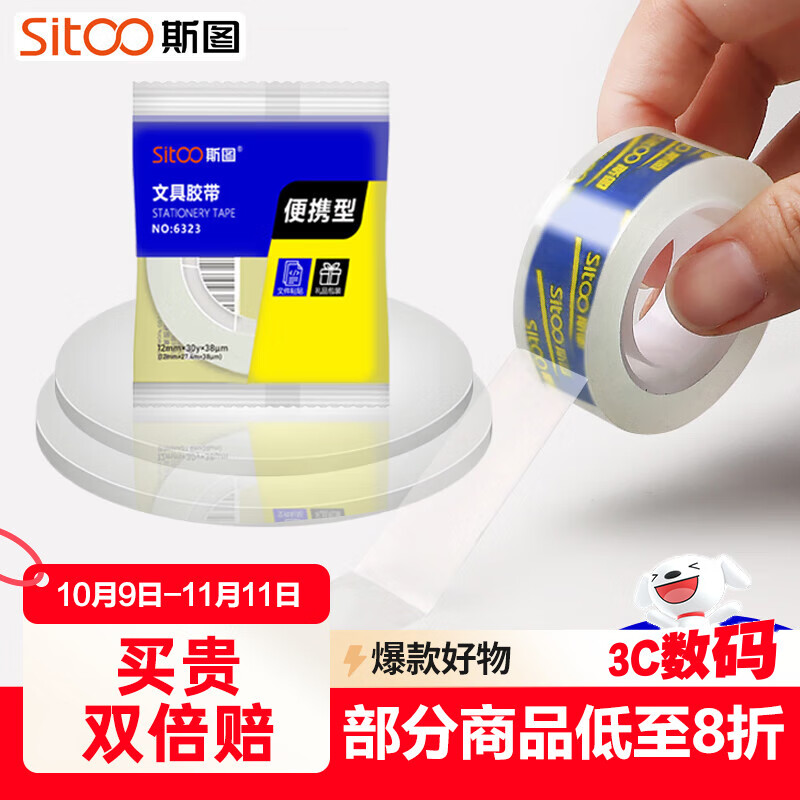 包邮 斯图(sitoo)透明胶带 12mm*30y1卷 高粘小胶带 小号隐形封口胶条 学生文具 办公用品 凑单 学习用品